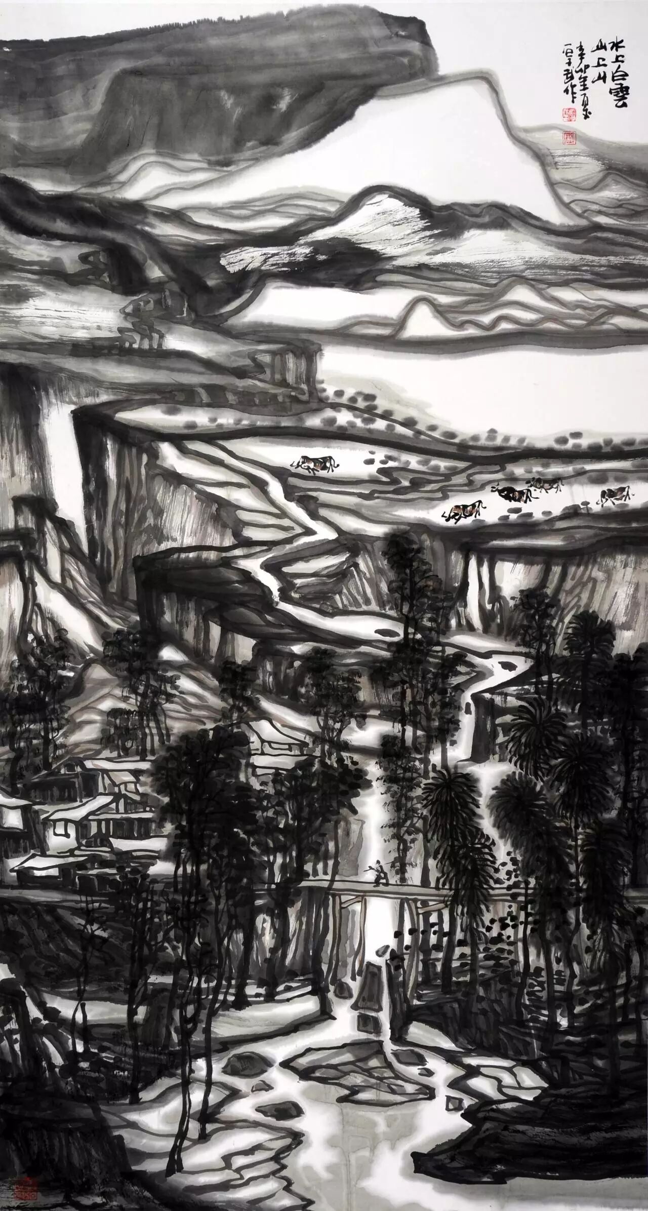 【展览预告】:远山的呼唤——姚厚武山水画展远山的呼唤——姚厚武山水画展 主办:中国国家画院(国展)美术中心、金砚传媒、收藏快报 时间:2017/6/21 上午10:30开幕式 地点:中国国家画院(国展)美术中心 咨询电话:010-57907368 姚厚武,祖籍山东临沂,现居北京,中国美术家协会会员,吉林省松原市美术家协会副主席,河北省美术学院特聘教授,河北省美术学院京华美术馆山水画高研班导师,京华美术馆中国山水画艺术委员会副主任,牡丹江市师范学院客座教授,国家一级美术师,国画大师李可染第三代弟子,北京市南海画院创作部主任,中国水墨研究院院士,中国冰雪画研究会会员,中国华下万里行书画家协会理事。建国60周年被中国文联评为六十年六十强中青年画家。21世纪最具收藏价值潜力的中国山水画100家之一,2012年被评为当代最具学术价值与市场潜力的30位画家之一。2013年中国画名家年度人物最具收藏潜力奖获得者。2014年入选当代画坛最具升值潜力的中国画100家。2015年被评为当代画坛最具升值潜力的中国画100家之一。 远山的呼唤(96cm×180cm) 远山的呼唤 ——姚厚武山水画的艺术追求 文/张福林 赏读画家姚厚武的《远山的呼唤》系列山水画作品,可以看出画家对浩渺无垠的宇宙的思索和对静谧悠远的文化的思索。 姚厚武在山水画创作时追求的是山水画的“精神”,他认为山水精神反映是山与水的关系与天地万物的关系和与人的关系。这几个关系体验的是一种理念精神、内在结构、自然关系和自然感受,也就是天、地、人三位一体的本质关系。这段话虽然是显得拗口,但体现了姚厚武对山水画艺术深厚内涵的充分注意,他绝对没有将山水画艺术视为对前人树立的规范、法式的揣摩或者既有程式的演练。作为一个热爱中国传统文化,而又生活在现代社会中的视觉艺术家,姚厚武清醒地理解他可以从哪些方面和以哪些手段,来表现他对自然的感受和对自然的崇敬。说崇敬是因为他感悟到山水包含着超越自然、超越自我和作品本身的艺术价值,他看重的是山水的庄严,深沉及其不可穷尽性,而不是它的明媚淡冶或者萧条,他十分明智地丢开了那种以潇洒娴熟的笔墨游戏于天地间的路数。这固然是由于性格气质的不同,更由于他知道相对于自然人的理性、信仰、能力…是何等琐屑和渺小。而集中表现了这种崇敬之情的作品。 幽芳静雅绿山林(96cm×180cm) 《远山的呼唤》系列作品表现的是作者心中“永恒的苍茫,永恒的四野八荒和梦幻般的广袤与深邃的情怀,这是现代人在打开了通向宇宙的窗户之后,对时间和空间的赞美崇敬之情。这种情怀与古代诗人“寄蜉蝣于天地,渺沧海之一粟”的感叹既有相通处,又有相异处。我们今天知道宇宙比原来想象的更加广大无垠,难以界定过去具有浪漫的人文情味的“天上宫阙”现在离我们更加遥远,也更加神秘。这就是姚厚武思想认知上的差异,这种差异促使他寻求一种既能发挥传统技法,又能表现今天的人们面对无边的宇宙时难以言说的感慨。范宽的高山大壑、雪景寒林对姚厚武的山水画创作有重要的启发作用,他曾经为范宽的宁静与崇高而感动。可以说姚厚武是在沿着范宽所开辟,而在明清文化盛期渐形荒芜的道路上继续前行。但他的作品具有明显的抽象意味,因为经过一千年的探究,宇宙对我们不是距离更近,而是距离更远了。它现在更加严峻、神秘、更加不可穷尽,更加超越世俗利害。古代山水画家面对宇宙时的天真、温暖的人文情怀,虽然令今人神往,但我们已经失去了那种天真、温暖所据以生长的想象的土壤,诗情被科学的观测计算所解构。这样传统山水画的构成要素“丘壑”被抽象的空间结构所代替,势在必然。五代北宋全景式的构图经过南宋诸家的变革,开始向近景,向局部转移。清初“四王”的叠床架屋只是徒劳的“复归”。在精神上他们距离北宋人的精神境界不是更近而是更远了。上世纪80年代,不止一位中国画家将目光转向广大深远的空间,范宽再次获得理解和尊仰,这显然是中国山水画图像发展的螺旋形靠拢。姚厚武画中无边的深谙,奇异的光明对称的结构,一方面使人想起现代天文学家获得的宇宙图像,另一方面却使我们将它与楚辞到唐诗的奇幻瑰丽相联系。艺术家就是这样通过个性化的创新,使传统文化精神一直保持着生长发展的活力。 高山村寨之一(96cm×180cm) 《远山的呼唤》系列作品代表着画家对自然宇宙的思考和对这种思考的表现。代表画家对本土文化精神的回味和对这种回味的表现。 以“诗意”为绘画主题,首先使人想起的是诗画结合这一老命题。诗与画的结合或者融合,有多一种理解角度。现在最为人所知的画上题诗实际上是诗画结合的最表面、最简化的方式。这方面创造记录的前有宣和画院,后有清朝的乾隆皇帝。画上题诗有可能赋予画面古雅之美,也有可能是画蛇添足式的作乱,其极端例证那位自命风雅见画必题的乾隆皇帝,他不懂诗画结合的本意是二者追求在最精炼的形式空间内,包容最深远的情感,比画上题诗高出一筹的做法是图解诗意,最近也最极端的例证是盛行60、70年代的“毛主席诗意画”。实际上那是一场最缺诗意的颂圣争宠的竞赛,与“画中有诗”的境界相去不可以道里汁。 山岳通天入风云(140cm×70cm) 姚厚武认为《远山的呼唤》与那些诗画结合的区别,在于他深刻理