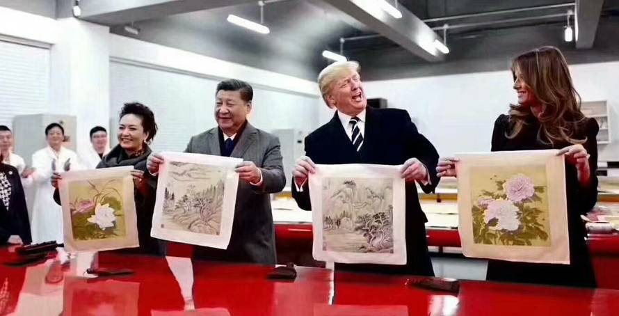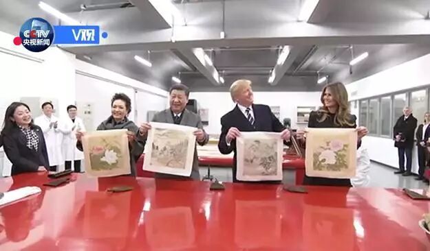 近平和夫人邀请特朗普夫妇体验书画装裱工序 国家主席习近平和夫人彭丽媛8日下午与来华进行国事访问的美国总统特朗普和夫人梅拉尼娅共同参观故宫文物医院。 两国元首夫妇先后观赏了钟表、木器、金属器、陶瓷、纺织品、书画等文物修复技艺展示,并共同观看了珍品文物展。习近平和夫人彭丽媛邀请特朗普夫妇体验书画装裱工序的关键环节——托画心。 两国元首积极评价中美两国在文物修复方面开展的广泛、深入合作。