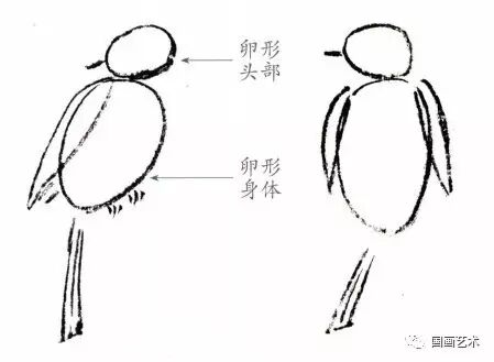 步骤二:淡花青墨点染腹部,浓墨、干笔、中锋运笔勾出背羽及翅上飞羽。