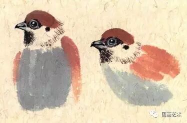 步骤一:用朱磦加墨调出赭墨点头部,重墨勾出喙和眼睛。
