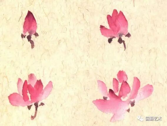 碧桃花是,顶端较尖,复瓣。真实的花瓣要比画出的繁密得多,写意画简化了长瓣的繁复,画出大的特点即可。